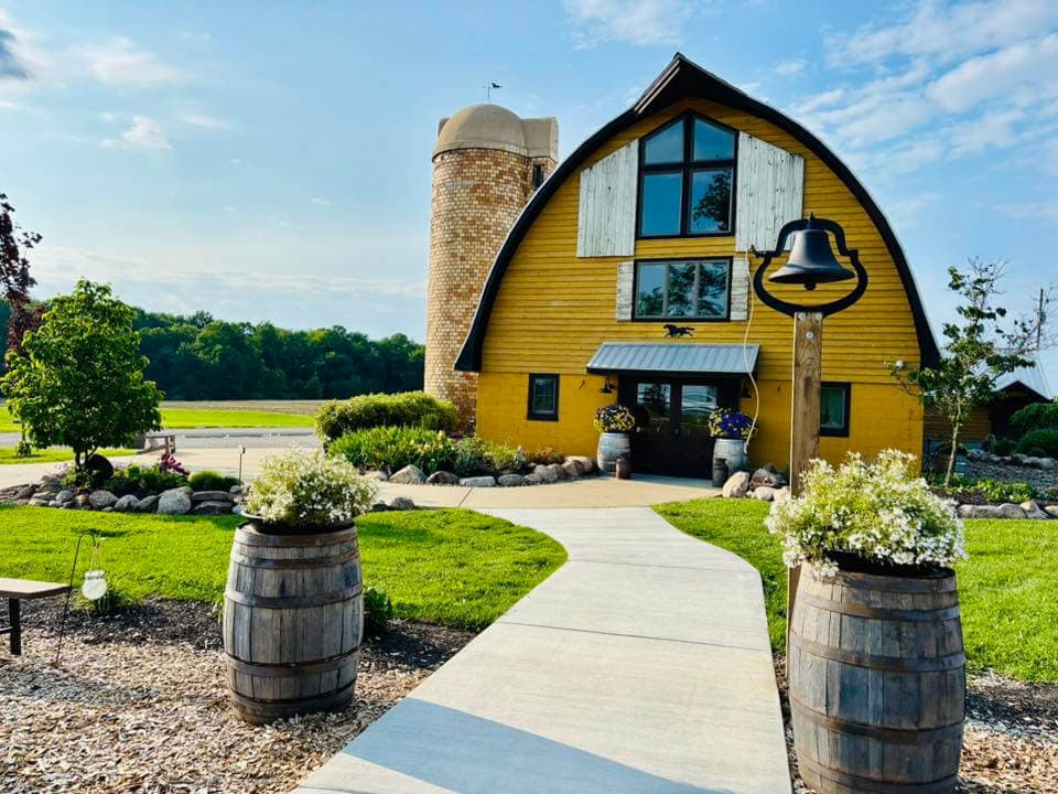 The property was originally owned by George and Barbary Stoltz who immigrated from Germany in the 1800s. The original barn burned in a fire in 1946. The farm was rebuilt and is what stands today. The barn is now owned by George’s great-great-great grandson Gabe, his wife Megan, and her parents Tate and Jen.